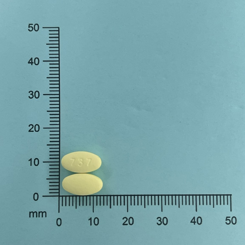 藥品外觀:黃色橢圓型膜衣錠,一面有「737」字樣,另一面有榮民製藥廠的標記。